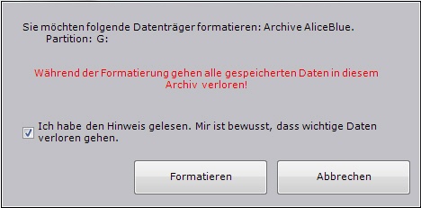 Gehen Sie folgendermaßen vor, um den Archiv-Datenträger zu formatieren:
