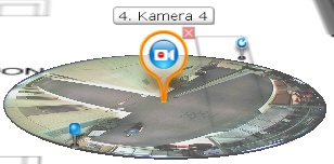 - Verschieben Sie das Kamerasymbol auf der Karte an einen Punkt, der der realen Position des Geräts am überwachten Objekt entspricht (1).