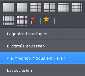 Um zur automatischen Änderung des Layouts der alarmierten Kameras zurückzukehren, klicken Sie erneut auf das bereits gewählte Format.