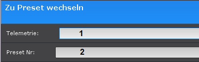 - Voreinstellung (2) - Voreinstellungsnummer der Videokamera, auf die bei Auslösung des Makros umzuschalten ist.