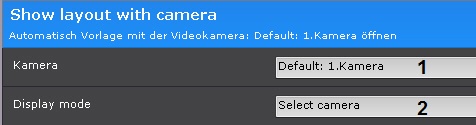 1. Wählen Sie die anzuzeigende Kamera (1). Eine implizite Auswahl einer Videokamera ist ebenfalls erlaubt - Eine Videokamera, die den Befehl ausgelöst hat.