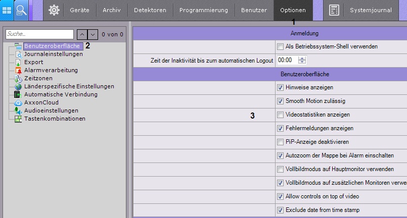- Wählen Sie in der Registerkarte Einstellungen → Optionen → Benutzeroberfläche (1-2).
