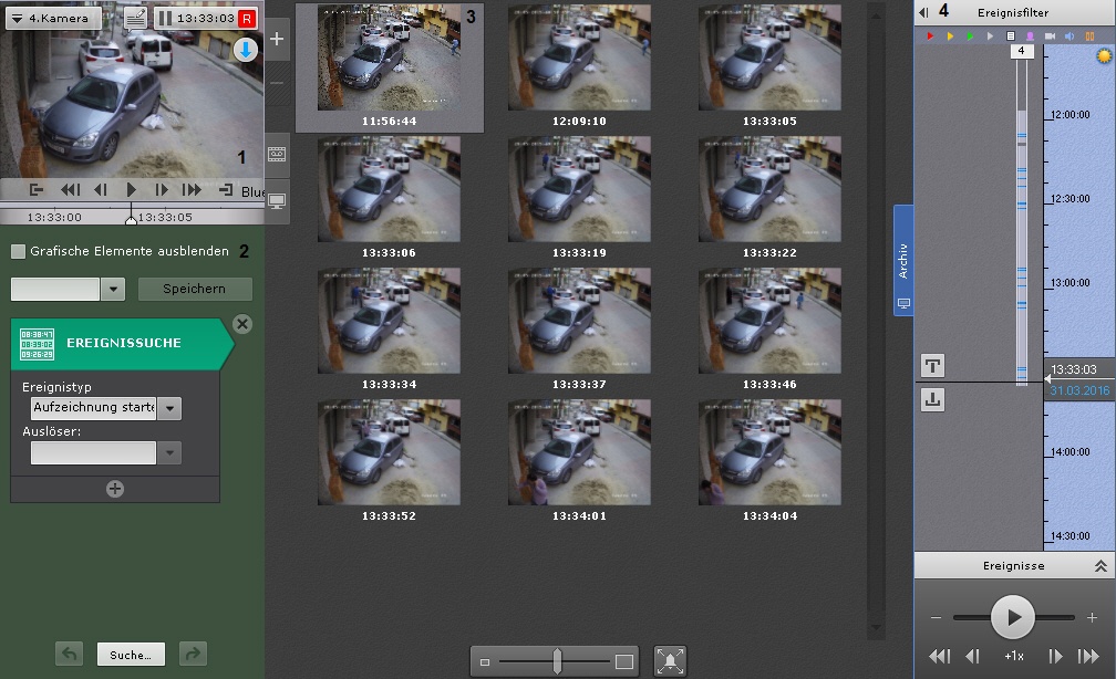 - Suchfeld (2,vlg. Suche im Archiv einer Videokamera).