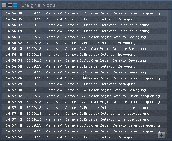 Am Anfang der Liste stehen die neuesten Ereignisse. Um zum Ende der Ereignis-Liste zu springen, benutzen Sie die Schaltfläche