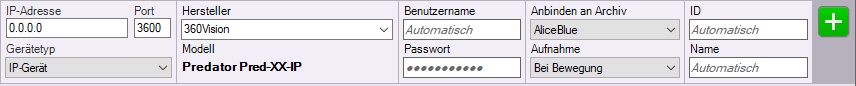 IP-Adresse, Port, Hersteller, Modell, Login, Passwort, Kennung, Objektname