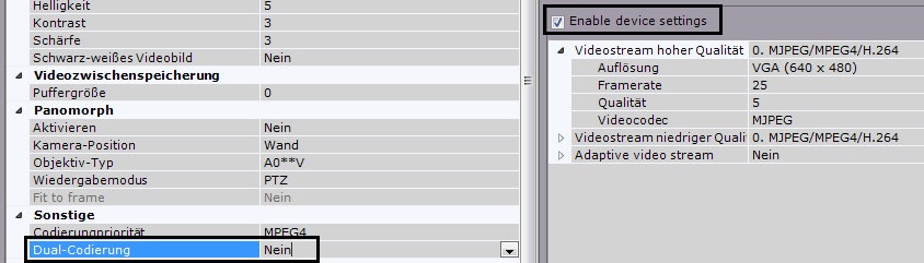 - Ein Format aus der Liste Dual-Codierung wählen, das bei der Dual-Codierung des Videostreams Priorität hat.
