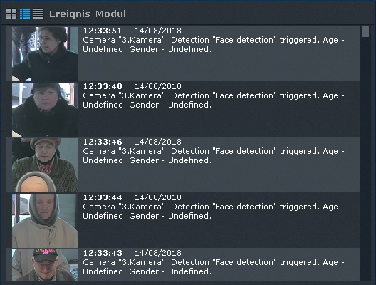 Gesichtserkennungsereignisse werden im Systemprotokoll registriert.