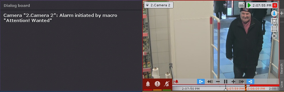Wenn das Kamerafenster mit der Ereignistabelle verbunden ist, können Sie auf ein Ereignis doppelklicken, um die Videomaterialsuche nach Sequenzen zu starten, die das erkannte Gesicht enthalten.