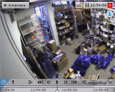 Um eine Archivwiedergabe zu starten, klicken Sie auf  in der Mitte der Zeitleiste. Zum Umschalten der Wiedergabe in den Pausenmodus müssen Sie mit der linken Maustaste auf die Schaltfläche  oder die Zeitleiste klicken.