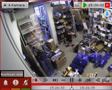 Im Modus Alarmquittierungsmodus wird der Benutzer, der den Alarm veranlasst hat, im unteren Bereich des Kamerafensters angezeigt.