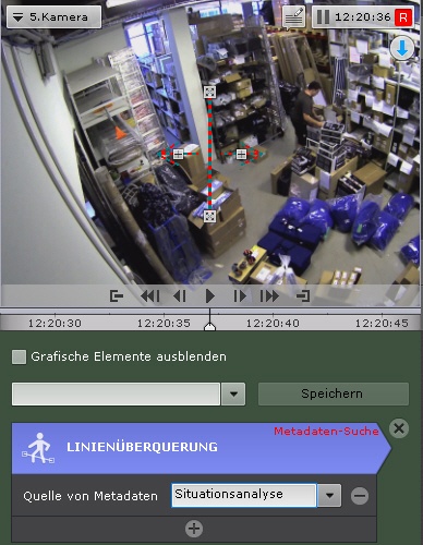 1. Im Kamerafenster eine virtuelle Linie vorgeben, für die im Archiv die Fälle der Überquerung gesucht werden sollen.
