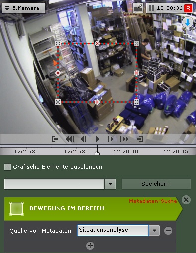 Im Kamerafenster den Bereich vorgeben, der bei der Suche auf Übereinstimmung mit dem gewählten Kriterium zu analysieren ist.