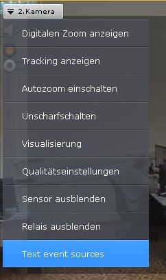 Um die Titelanzeige abzuschalten, wählen Sie im Kontextmenü des Videoüberwachungsfensters die Option Text Event Source und dann das POS-Gerät, dessen Informationen nicht auf den Bildschirm ausgegeben werden sollen.