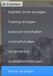 Um den aktuellen Status eines Sensors einer Kamera anzuzeigen, wählen Sie Sensor anzeigen im Kontextmenü des Kamerafensters.