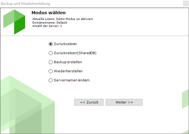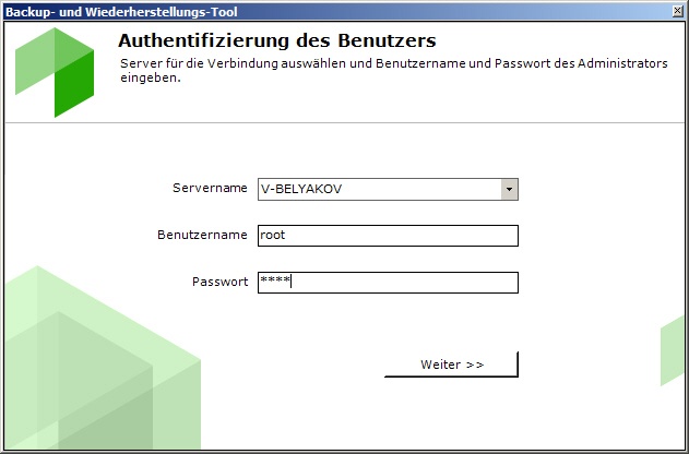 Nach Durchführung der oben beschriebenen Aktion erscheint das Dialogfenster des Programms BackupTool.exe.