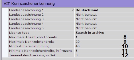 - Geben Sie im Feld Tracker-Timeout den Zeitraum in Sekunden an, während dem nach einer erfolgreichen Kennzeichenerkennung keine Erfassung erfolgt (12).