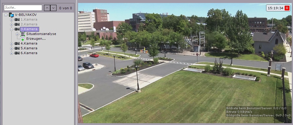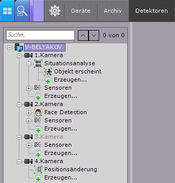 Zur Darstellung der Videokamera und des entsprechenden Zweigs in der Detektorliste muss die Kamera in der Softwareplattform Axxon Next eingeschaltet sein.