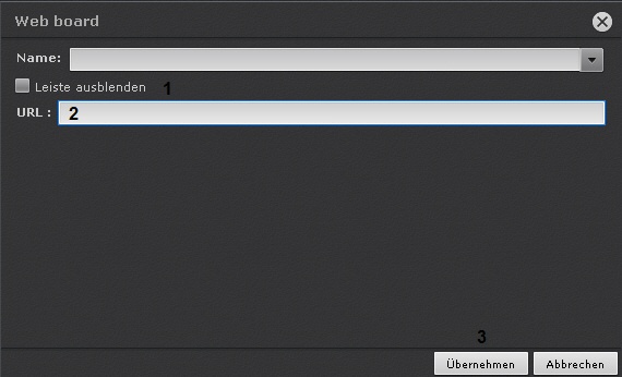 Geben Sie im Feld URL die Adresse der anzuzeigenden Seite ein (2).