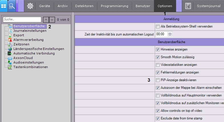 - Wählen Sie in der Registerkarte Einstellungen → Optionen → Benutzeroberfläche (1-2).