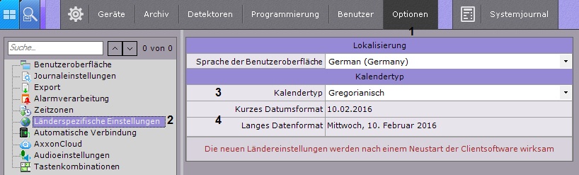 Im Axxon Next VMS werden Zeit- und Datumsformate und -werte auf Betriebssystemebene definiert (4).