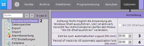 Sie können das System so einstellen, dass der Client automatisch beendet und / oder gesperrt wird, wenn der Benutzer eine bestimmte Zeit lang inaktiv verbleibt, d.h., wenn keine Signale von HID-Geräten kommen (Tastatur, Maus, Joystick usw.).