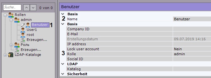 Im System wird ein Benutzer hinzugefügt, und auf der rechten Seite wird eine Einstellungsleiste für die Rechte dieses Benutzers geöffnet. - Geben Sie den Benutzernamen ein (2).