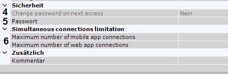 Um einen Benutzer zu zwingen, das Kennwort bei der nächsten Verbindung zum Client zu ändern, setzen Sie den entsprechenden Parameter (4) auf Ja.