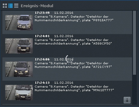 Die Erkennung von Kraftfahrzeugkennzeichen erfolgt mit Hilfe eines entsprechenden Detektors. Bei der Erkennung wird ein Ereignis gebildet, das die  Fahrzeugnummer enthält und in die Datenbank aufgenommen wird.