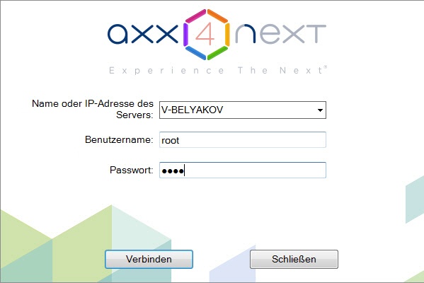 Die Softwareplattform Axxon Next  wird daraufhin gestartet, und es erscheint das Autorisierungsfenster.