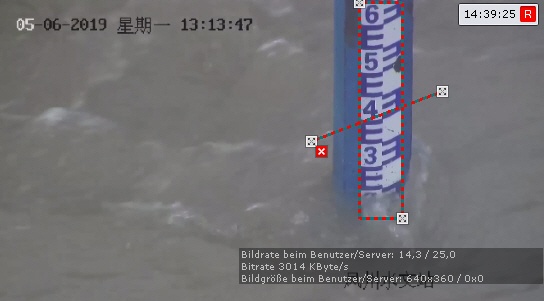 Sie können den Zahlenwert der Wasserstände im Kamerafenster einstellen (vlg. Konfigurieren der Anzeige der Wasserstandserfassung).