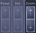To control focus, iris, and optical zoom, move the corresponding slider up or down.