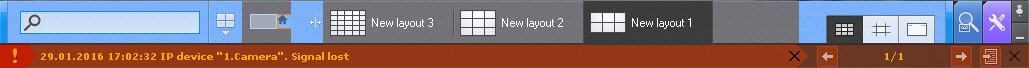 Messages about system errors which have occurred are displayed in real time on a dynamic error panel. When there are no unaccepted errors, this panel is not displayed; when there are such errors, it is displayed in Axxon Next's Layouts tab.