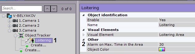 - In the Detection Tools list, highlight a Loitering object (1).