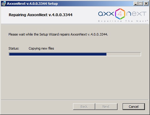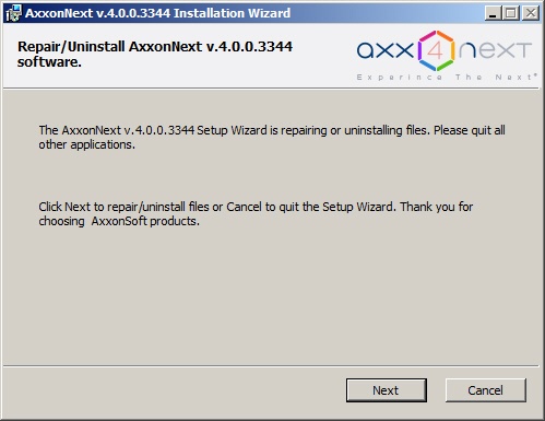 To ensure that Axxon Next is re-installed correctly, all related applications should be closed before starting the repair installation
