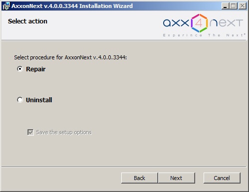 To run a repair installation of the Axxon Next software, you must perform the following steps: