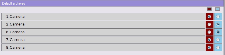 2. To change the default archive for a camera, move the designator to the relevant archive.