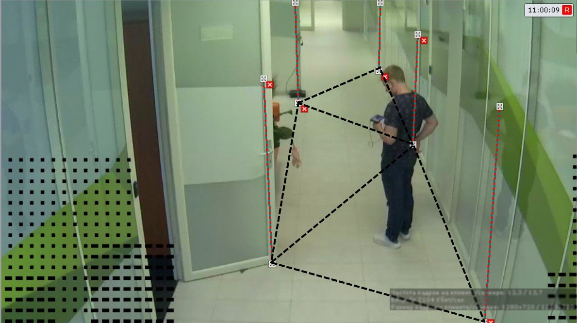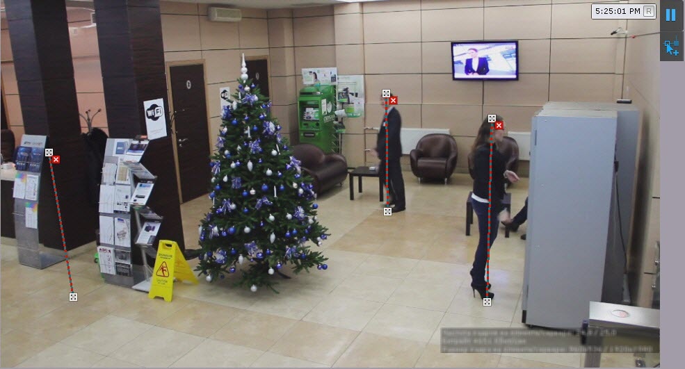 Set the size of the same human figure in different areas of FOV. To create a leveling rod, left-click on the video image to add two anchor points. You should set no less than three leveling rods. The leveling rod height must correspond to a human figure placed in the same point of the scene. You can resize the rod by stretching its anchor points , or move it on screen by dragging and dropping.