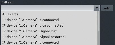 To add events of the same type from different devices, enter the name of the event in the Filter field. This will list only the events of the chosen type. To list all events, clear the filter field.