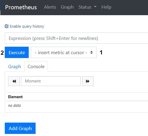 Select the required metric in the list (1) or enter the query in the Expression field.