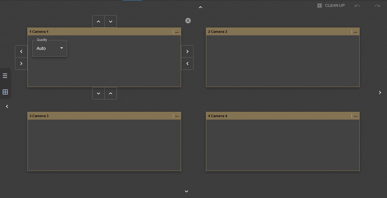 5. Select the default stream for each video camera from the Quality list.  Use the buttons at the top of the screen to select quality for all camera layouts.