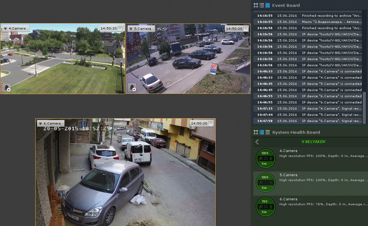 You can add video camera tiles and information boards (dashboards) to a layout. You can also attach a map, that will be automatically displayed when you switch to this layout.