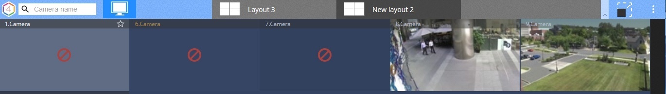 button to sort the cameras on the panel by ID, or click the button to sort the cameras by name.To search for a camera, enter the full or partial device name in the Camera name field. The cameras panel will display only the devices that meet the search criteria. All matching devices will be highlighted.
