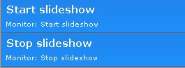 These actions start and stop the slideshow of the layouts on the operator's monitor (see Selection and Slideshow of Layouts).