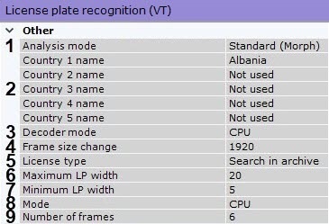 13. Set the number of frames required for LPR/ANPR (9). This is a necessary condition, but it is not sufficient for the first output. This condition delays the LPR output. This parameter allows increasing the reliability of the results, as well as hiding false positives.