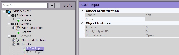 Check the functioning of the Input in the Devices tab (see the section The Input Object). The detection properties field in the Detection Tools tab duplicates the settings entered in the Devices tab under Settings and is not editable.