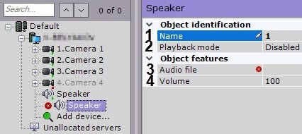 - Select the speaker mode: disabled, play back on Server, play back on Clients (2).