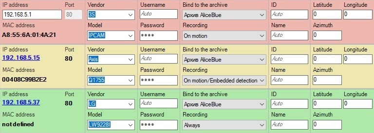 - Camera coordinates (latitude, longitude, azimuth) which are used when the camera is added to the geo map (see Adding video cameras).