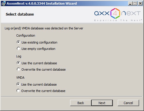 When you perform the upgrade to Axxon Next version 4.5.0 - 4.5.8, keep the databases in the same folder. If you set a different location for the databases, then metadata and database events will be unavailable.