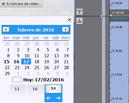 Pinchar sobre el indicador para abrir el calendario. Seleccionar la fecha a la que se requiere pasar en el archivo y asignar con ayuda de las flechas o del teclado la hora en HH:MM:SS.