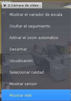 Para realizar el control del relé es necesario elegir el punto Mostrar relé del menú contextual de la ventana de videovigilancia.